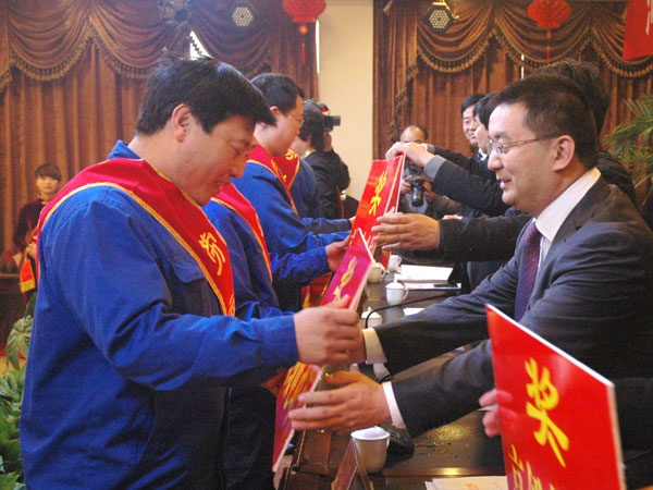 2013年3月16日上午,大地公司北会议室内座无虚席、掌声雷动,到处洋溢着喜庆祥和气氛,大地集团2012年度工作总结暨表彰大会隆重召开。副县长魏学君、县总工会主席郭鹏飞、集团领导、受表彰的先进工作者、优秀经销商、供应商及部分职工代表共700多人参加了会议。 会议由党委副书记王福文主持。会议首先由集团董事长张彪作工作报告。报告对2012年的工作进行了系统回顾总结,充分肯定了所取得的成绩,同时指出了工作中存在的不足和问题,分析了当前面临的形势和任务,并对今年的目标任务提出了明确的思路和要求。对做好2013年的工作,张董事长强调重点抓好7个方面的工作:一、坚持强管理、促销售、创高产、增效益、勇创新的指导方针。二、积极引进先进生产管理人才和技术人才,创造先进的管理模式,加强与先进企业的对标管理,促进生产制度和管理制度的创新,使经济技术指标达到或超过同行业的先进水平。三、坚持“至高品质、至诚服务”的宗旨不动摇,坚持走名牌销售战略,充分发挥大地水泥的品牌优势,鼓励培育专营经销商,并向2级、3级网点发展,牢固占领现有市场,努力拓展新市场。四、加快现有项目的建设进度,确保按计划竣工投产。五、继续坚持“人才是企业第一资源”的指导思想,根据企业发展需要,制订公司中长期人才供需规划,建立人才数据库,为企业快速发展提供人才保障。六、不断充实kaiyun·开云(中国)官方网站核心内容,将良好的kaiyun·开云(中国)官方网站渗入企业肌体,形成一个风气正、人心齐、奋发向上、包容和谐的良好氛围,为企业的快速发展提供动力和正能量。七、进一步绿化、美化厂区,做好厂区环境整治,打造环境最美的花园式企业。 会上,集团总裁崔泉发宣读了“关于表彰2012年度先进集体和先进个人及优秀经销商、供应商的决定”。对荣获劳动模范、技术能手、忠诚卫士、先进集体、先进工作者代表和优秀经销商、供应商代表进行了颁奖。先进单位代表、先进工作者代表、优秀经销商代表分别作了典型发言。 最后,魏学君副县长作了重要讲话。他说,大地集团已连续五年蝉联宝丰县纳税第一名,特别是2012年,在建材市场形势严峻的情况下,仍实现纳税达1.4亿元,连续两年成为我县纳税超亿元企业。县委、县政府将一如既往地高度关注大地集团的发展,努力为大地集团营造更加宽松、更加良好的经济发展环境,坚决做好大地集团发展的坚强后盾。希望大地集团抢抓机遇,创新科技,做大做强,为县域经济的发展作出新的更大的贡献。