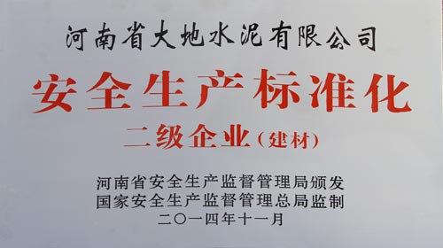 河南省大地水泥有限公司荣获安全生产标准化二级企业