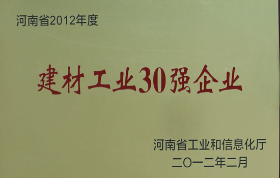 首页 >> kaiyun.com >>资质荣誉 >> 河南省2012年度建材工业30强企业